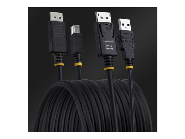 10ft (3m) DisplayPort och USB 5Gbps KVM-kabel från StarTech.com är utformad för att effektivisera anslutningen mellan tangentbord, video och mus för en sömlös användarupplevelse. Med stöd för upp till 4K-upplösning vid 60 Hz och HDR10 säkerställer den här kabeln levande och skarp videokvalitet, vilket gör den lämplig för högpresterande installationer. Kabeln är tillverkad av slitstark termoplastisk elastomer (TPE) med nickelpläterade kontakter och ger tillförlitlig prestanda och långvarig användning.