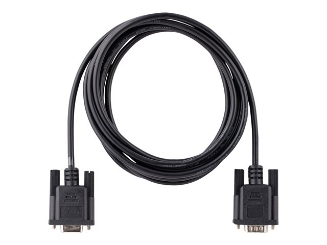 StarTech.com 3m RS232 Serial Null Modem Cable, Crossover Serial Cable w/Al-Mylar Shielding, DB9 Serial COM Port Cable Female to Male, Compatible w/DTE Devices - Tool-Less Design w/Thumbscrews, Black, F/M (9FMNM-3M-RS232-CABLE) - Nollmodemkabel - DB-9 (hona) till DB-9 (hane) - 3 m - formpressad, tumskruvar, crossover - svart