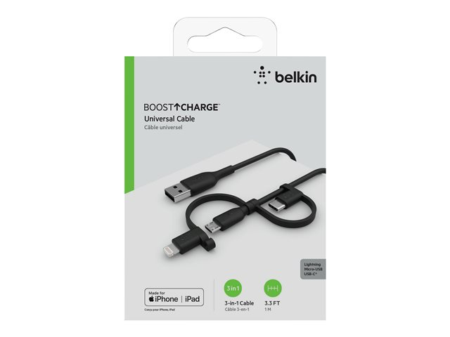 Belkin BoostCharge Universal - USB-kabel - USB hane till mikro-USB typ B, Lightning, USB-C hane - 1 m
