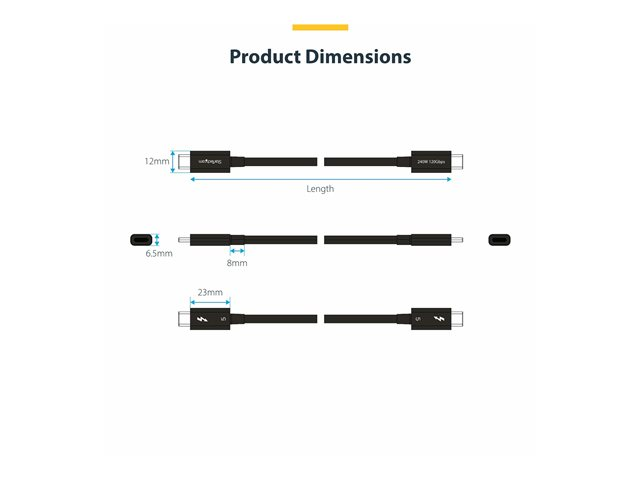 StarTech.com 1.5ft (50cm) Thunderbolt 5 Cable, 80Gbps/120Gbps, Certified - Thunderbolt-kabel - Thunderbolt 5 (hane) till Thunderbolt 5 (hane) - USB4 / Thunderbolt 3 / Thunderbolt 4 / Thunderbolt 5 / DisplayPort 2.1 - 50 cm - stöd för 4K, stöd för 8K, passiv, USB-strömförsörjning (240W) - svart TBLT5MM50CM240W