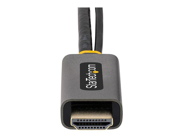 Denna 30 cm (1 fot) HDMI till DisplayPort-adapter har stöd för upp till 3840 x 2160 60 Hz med HDR, HDCP 2.2 och 2-kanals DisplayPort-ljud. Dessutom har den stöd för 4K 30 Hz, 1080p och ultravida upplösningar på upp till 3440 x 1440 60 Hz.