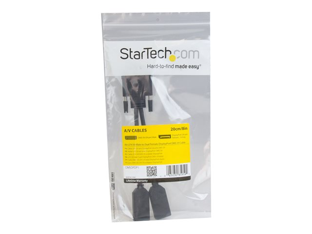 StarTech.com 20 cm DMS-59 till Dual DisplayPort-adapterkabel - 4K x 2K Video - LFH DMS 59-stift (M) till 2x DisplayPort 1.2 (F) Y-splitterkabel - LFH-grafikkort till dubbla DP-skärmar - Bildskärmsdelare - DisplayPort (hona) till DMS-59 (hane) - 20.3 cm - formpressad, tumskruvar - svart DMSDPDP1