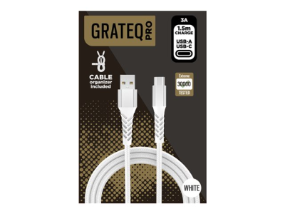 GRATEQ PRO - USB-kabel - USB typ A (hane) till 24 pin USB-C (hane) - 3 A - 1.5 m - snabbladdning - vit
