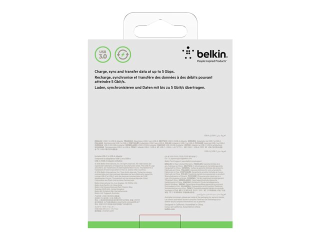 Belkin 3.0 USB-C to USB-A Adapter - USB-adapter - USB-C (hane) vändbar till USB typ A (hona) - USB 3.0 - 3 A - svart