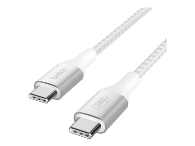 Belkin BoostCharge - USB-kabel - 24 pin USB-C (hane) till 24 pin USB-C (hane) - USB 2.0 - 1 m - stöd för strömleverans på upp till 240 W - vit