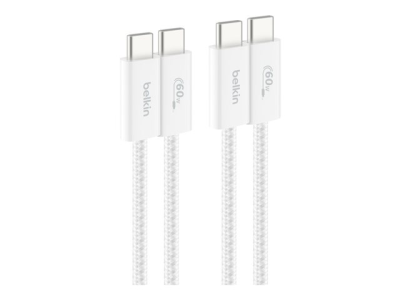 Belkin BoostCharge - USB-kabel - 24 pin USB-C (hane) till 24 pin USB-C (hane) - 1.5 m - Snabbladdning upp till 60 W - vit (paket om 2)