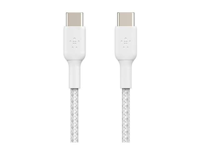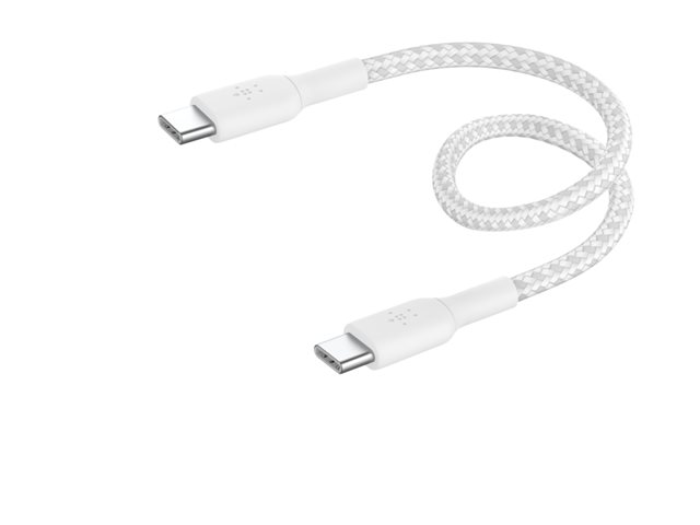 Belkin BoostCharge - USB-kabel - USB-C (hane) till USB-C (hane) - USB 2.0 - 20 V - 3 A - 15 cm - USB Power Delivery (60W), flätad kabel - vit