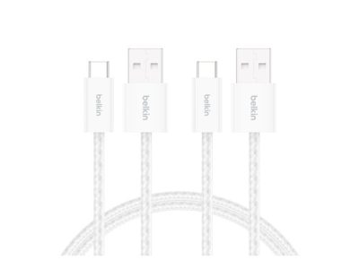 Belkin BoostCharge - USB-kabel - USB (hane) till USB-C (hane) - 1.5 m - flätad kabel, USB Fast Charge (15W) - vit (paket om 2) BBD010HQ05WH2PK