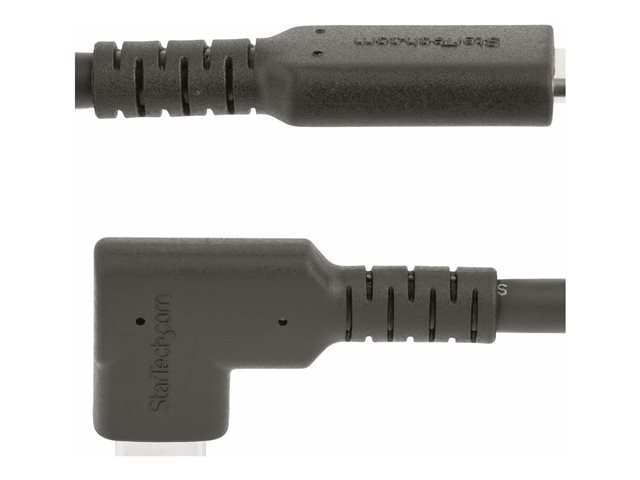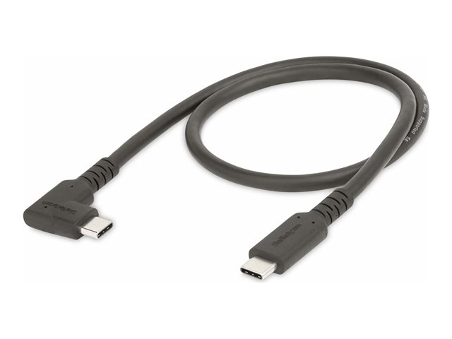 StarTech.com 1.6ft (50cm) Rugged Right Angle USB-C Cable, USB 3.2 Gen 2 (10 Gbps), USB C to C Data Transfer Cable, 4K 60Hz DP Alt Mode, 100W Power Delivery - 90 Degree USB-C Cable (RUSB31CC50CMBR) - USB-kabel - USB-C (hane) rak till USB-C (hane) högervinklad - USB 3.2 Gen 2 - 50 cm - 4K60Hz stöd, robust - svart RUSB31CC50CMBR