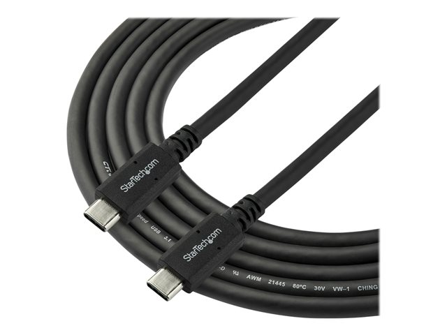 StarTech.com 1,8 m USB C till USB C-kabel - 5A, 100W PD 3.0 - Certifierad Works With Chromebook - USB-IF-certifierad - H/H - USB 3.0 5 Gbps - USB C-laddningskabel - USB Type-C-kabel - USB-kabel - 24 pin USB-C (hane) rak till 24 pin USB-C (hane) rak - USB 3.0 - 5 A - 1.8 m - stöd för 4K - svart - för P/N: DK30C2DAGPD, DK30C2HAGPD, SV211HDUC, SV221HUC4K