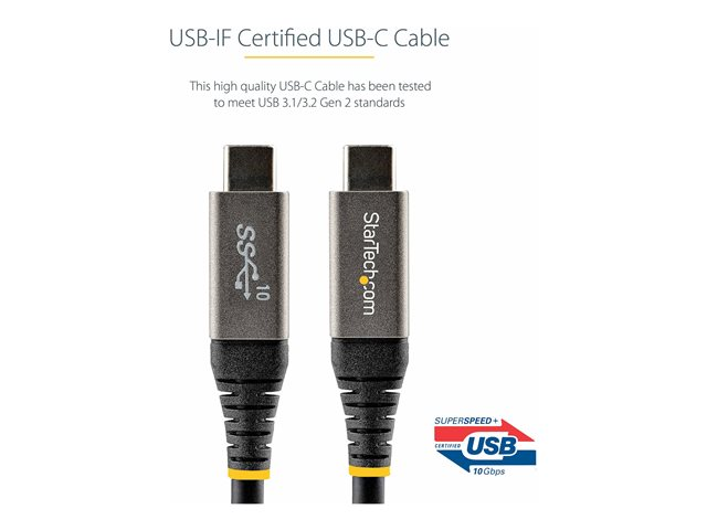 StarTech.com 1 m USB C-kabel 10 Gbit/s - USB-IF-certifierad USB-C-kabel - USB 3.1/3.2 Gen 2 Type-C kabel - 100 W (5A) Power Delivery-laddning, DP alt-läge - USB C till C-kabel - Laddning och synkronisering - USB-kabel - 24 pin USB-C (hane) till 24 pin USB-C (hane) - USB 3.2 Gen 2 / DisplayPort 1.4 /Thunderbolt 3 - 1 m - stöd för 4K - grå, svart