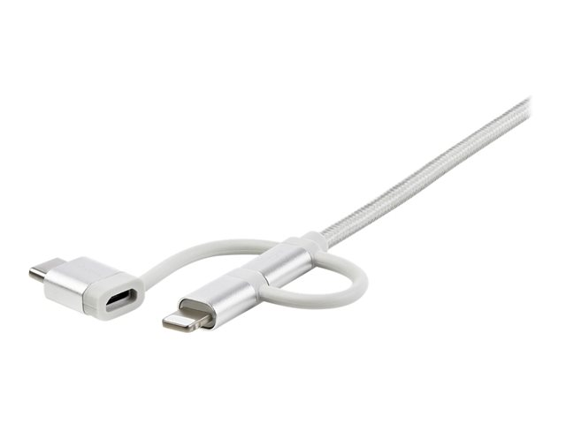 StarTech.com 1 m USB-multiladdningskabel - USB till Micro-USB eller USB-C eller Lightning för iPhone/ iPad/iPod/Android - Apple MFi-certifierad - 3 i 1 USB-laddare - Vävd - USB-kabel - USB (hane) till mikro-USB typ B, Lightning, USB-C (hane) - 1 m - silver LTCUB1MGR