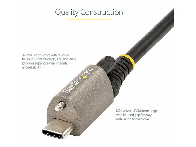 StarTech.com 1 m toppskruvlåsande USB C-kabel 10 Gbit/s - USB 3.1/3.2 Gen 2 Type-C kabel - 100W (5A) Power Delivery-laddning, DP alt-läge - Enkel skruvlåsning - USB-C-kabel ladda/synkronisera - USB-kabel - 24 pin USB-C (hane) rakt/lockande till 24 pin USB-C (hane) rak - USB 3.2 Gen 2 / DisplayPort 1.4 /Thunderbolt 3 - 1 m - stöd för 8K - grå, svart