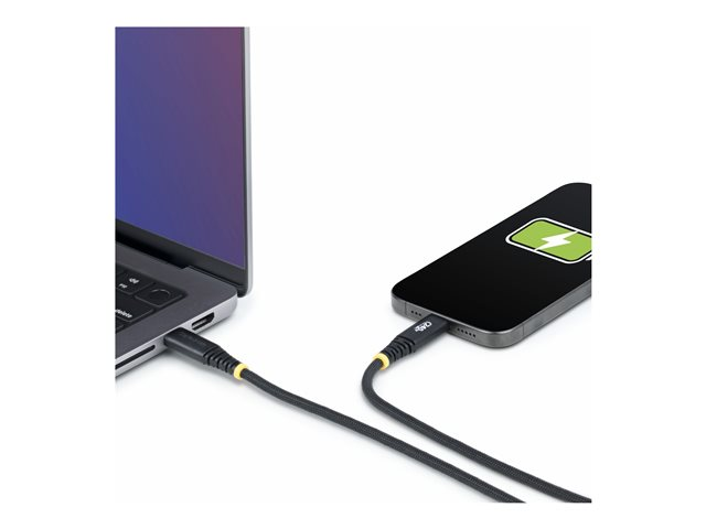 Den 2 m långa USB-C-laddningskabeln från StarTech.com är utformad för prestanda och mångsidighet. Med en datahastighet på 480 Mbps möjliggör denna kabel snabba dataöverföringar samtidigt som den levererar en strömförsörjning med USB Power Delivery-kapacitet på upp till 240 W. Den robusta konstruktionen, med en nylonflätad utsida och silikonmantel, säkerställer hållbarhet, vilket gör den lämplig för olika miljöer. Med en livslängd på över 20 000 instickningar är kabeln byggd för att klara frekvent användning utan att kompromissa med kvaliteten. USB-C-kabeln är utrustad med nickelpläterade kontakter som ger utmärkt ledningsförmåga och tillförlitliga anslutningar. Den stöder en märkspänning på 48 V och en märkström på 5 A, och uppfyller standarder som RoHS och USB-IF. Denna StarTech.com USB-C-kabel är utformad för moderna enheter som kräver snabb laddning och dataöverföring och är en lösning för dem som söker effektivitet och tillförlitlighet.