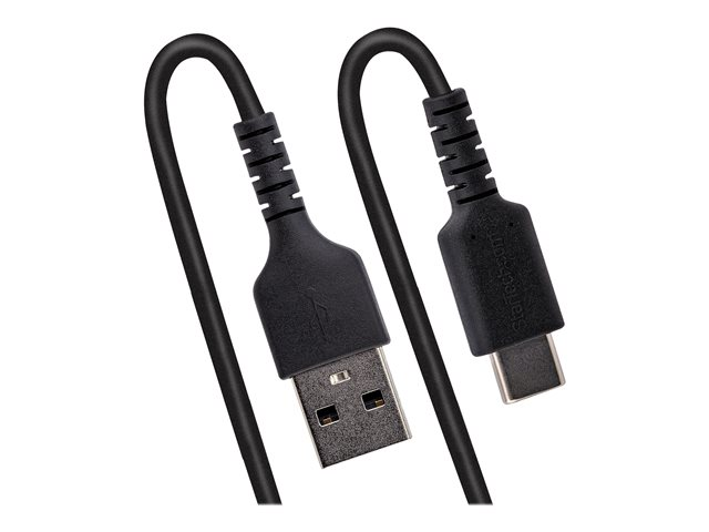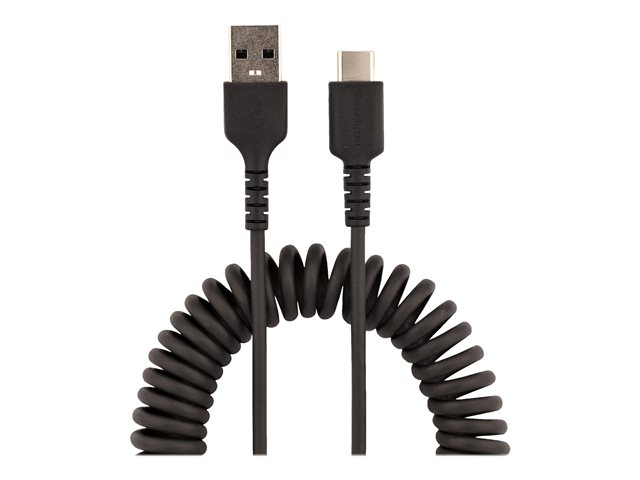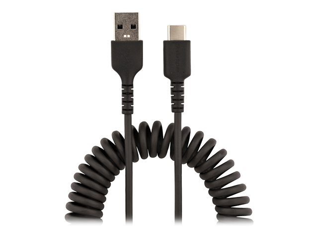 StarTech.com 50 cm USB-A till C-laddningskabel, kraftig spiralkabel för snabb laddning och synkronisering, USB 2.0 A till USB Type-C-kabel av hög kvalitet, robust aramidfiber, slitstark hane till hane USB-kabel - USB-kabel - USB (hane) till USB-C (hane) - USB 2.0 - 3 A - 50 cm - lindad - svart R2ACC-50C-USB-CABLE