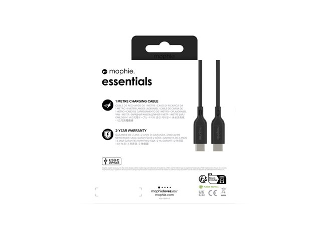 mophie essentials - USB-kabel - 24 pin USB-C (hane) till 24 pin USB-C (hane) - 1 m - USB Power Delivery (60W) - svart
