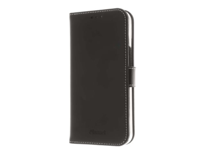 Insmat Exclusive Flip Case - Vikbart fodral för mobiltelefon - läder, polykarbonat, bomullssömmar, kartong+papper - svart - för Apple iPhone 14 Pro