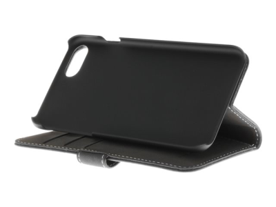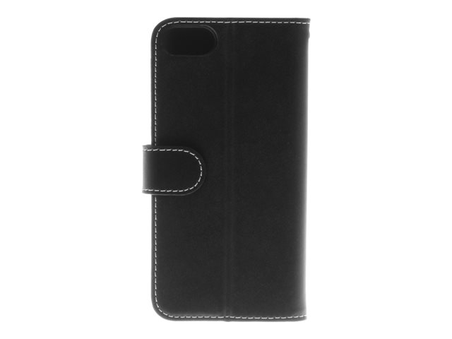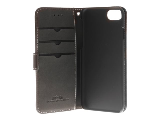 Insmat Exclusive Flip Case - Vikbart fodral för mobiltelefon - genuint läder - svart - för Apple iPhone 6, 6s, 8, SE (andra generationen)