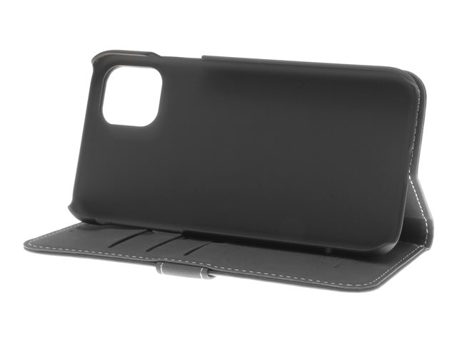 Insmat Exclusive Flip Case - Vikbart fodral för mobiltelefon - genuint läder, polykarbonat - svart - för Apple iPhone 11