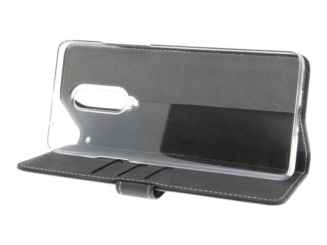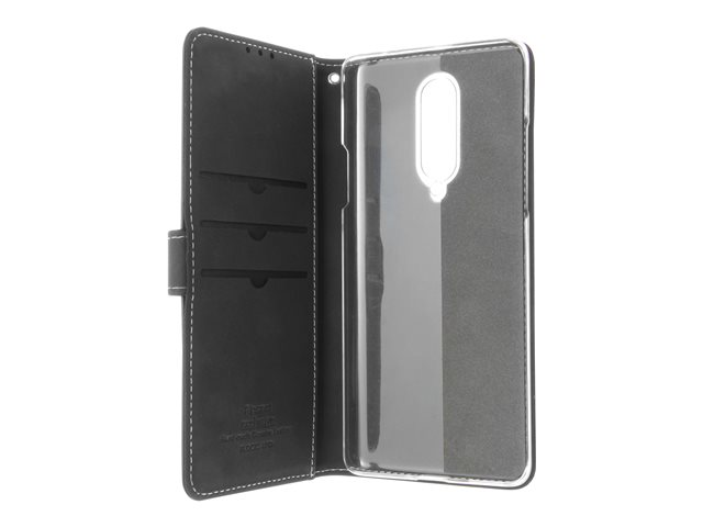 Insmat Exclusive Flip Case - Vikbart fodral för mobiltelefon - genuint läder, papper, kartong, polykarbonat, aluminiumfolie - svart - för OnePlus 8
