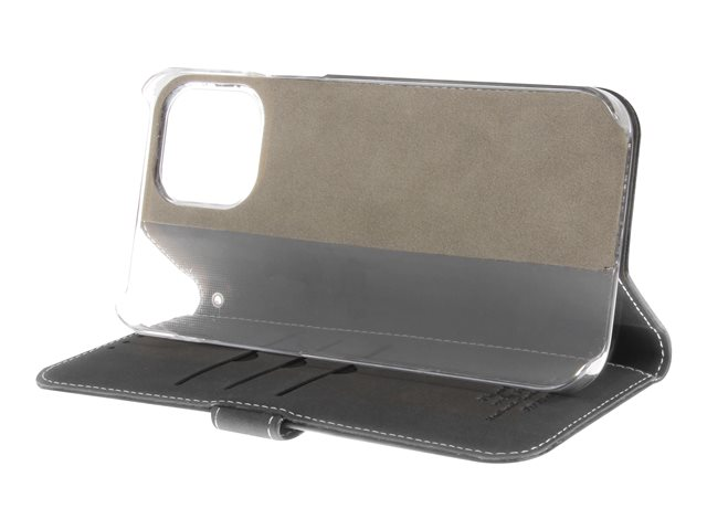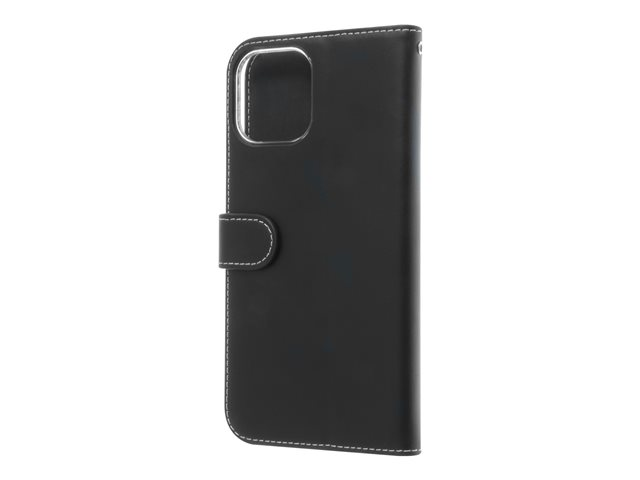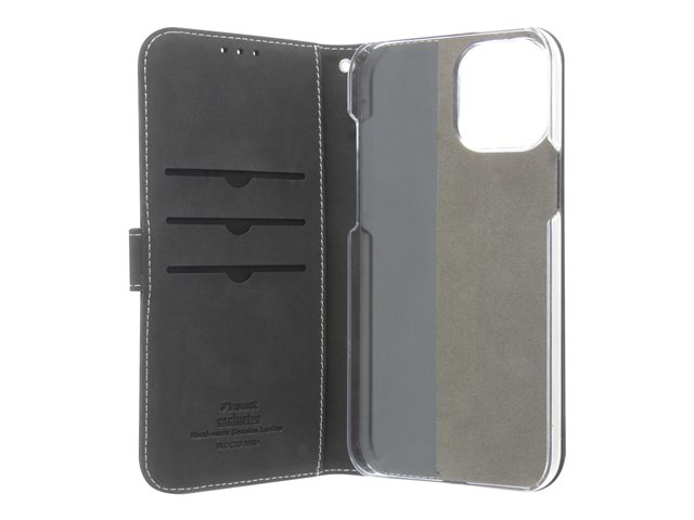 Insmat Exclusive Flip Case - Vikbart fodral för mobiltelefon - papper, kartong, läder, polykarbonat, bomull, aluminiumfolie - svart - för Apple iPhone 12 Pro Max