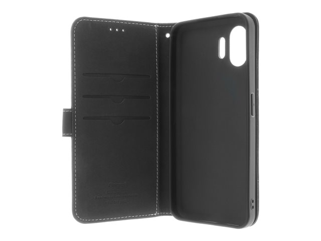 Insmat Exclusive - Vikbart fodral för mobiltelefon - genuint läder, termoplastisk polyuretan (TPU), kartong+papper+aluminiumfolie - svart - för Nothing Phone (2) 650-3178