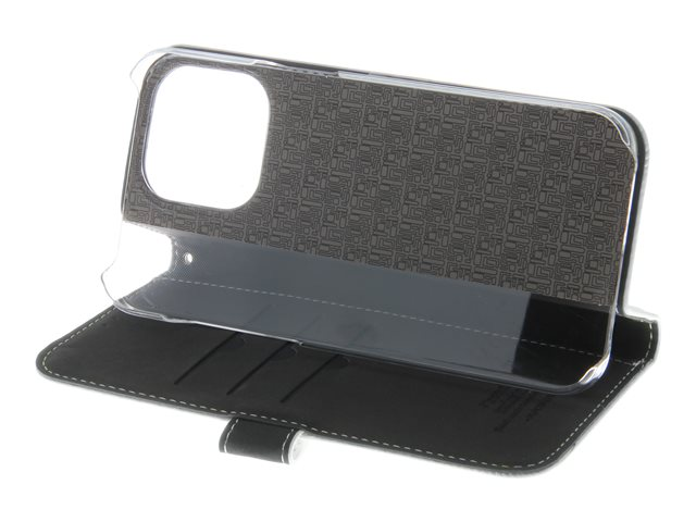 Insmat Exclusive - Vikbart fodral för mobiltelefon - genuint läder, polykarbonat, kartong+papper+aluminiumfolie, bomullssömmar - vit - för Apple iPhone 15 Pro Max