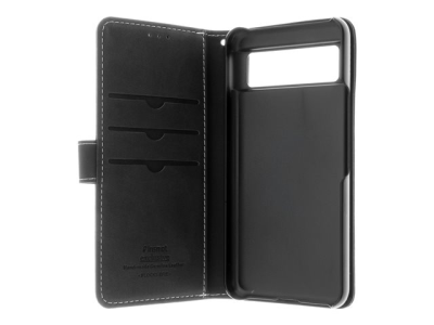 Insmat Exclusive - Vikbart fodral för mobiltelefon - genuint läder, kartong+papper, PU-beläggning, polykarbonat (PC) - svart - för Google Pixel 8