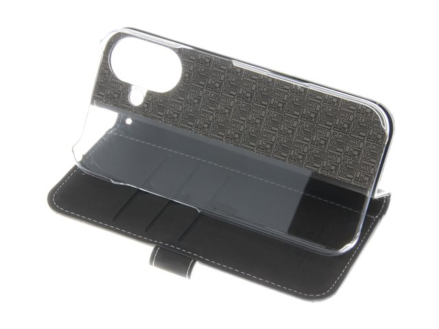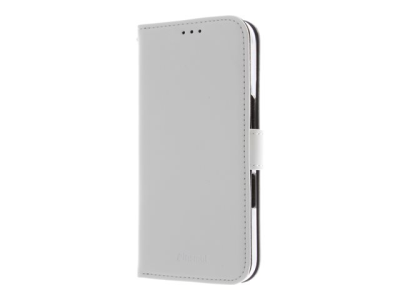 Insmat Exclusive - Vikbart fodral för mobiltelefon - genuint läder, kartong+papper+aluminiumfolie, polykarbonat (PC), bomullssömmar - vit - för Apple iPhone 16