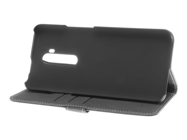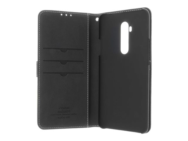 Insmat Exclusive Wallet - Vikbart fodral för mobiltelefon - polyuretan, polykarbonat, bomull, brons - svart - för OnePlus 7T Pro