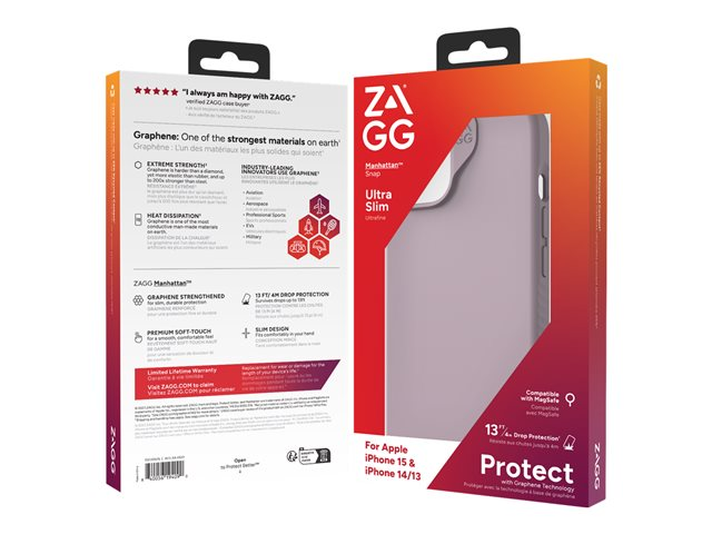 ZAGG Manhattan Snap - Baksidesskydd för mobiltelefon - MagSafe-kompatibilitet - silikon - lavendel - för Apple iPhone 13, 14, 15