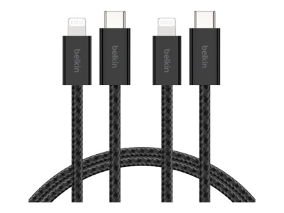 Belkin BoostCharge - Lightning-kabel - 24 pin USB-C hane till Lightning hane - 1.5 m - MFI-certifierad - svart - snabbladdning (paket om 2)