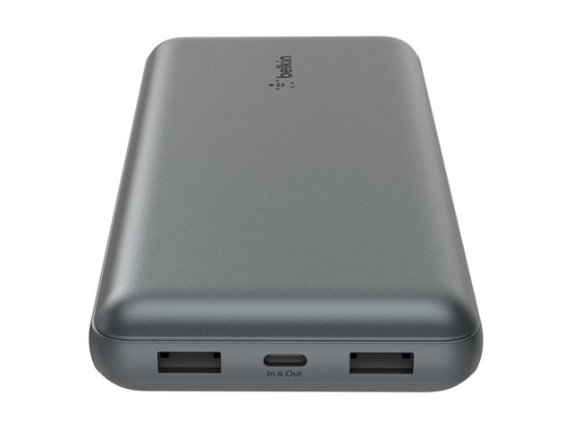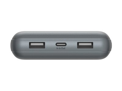 Belkin BoostCharge - Power bank - 20000 mAh - 15 Watt - 3 A - 3 utdatakontakter (2 x USB, USB-C) - på kabel: USB-C - rymdgrå