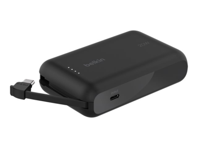 Belkin BoostCharge - Power bank - med integrerad kabel - 10000 mAh - 20 Watt - 3 A - Fast Charge - 2 utdatakontakter (USB-C) - svart