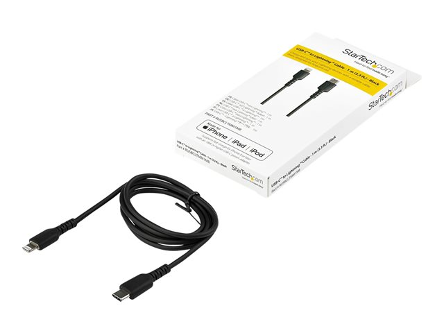 StarTech.com 1m tålig, svart USB-C till Blixtkabel - Hård, tålig aramifiber USB typ A till Blixtladdare/synkron strömsladd - Apple MFi-certifierad iPad/iPhone 12 - Lightning-kabel - Lightning hane till USB-C hane - 1 m - svart