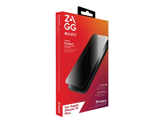 ZAGG InvisibleShield Glass Elite Privacy - Skärmskydd för mobiltelefon - glas - med sekretessfilter - 2-vägs - för Apple iPhone 15 Plus