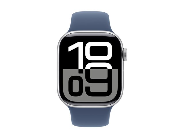 Apple Watch Series 10 (GPS) - 42 mm - silveraluminium - smart klocka med sportband - fluoroelastomer - denim - bandstorlek: S/M - 64 GB - Wi-Fi 4, UWB, Bluetooth - 30 g MWWA3QN/A