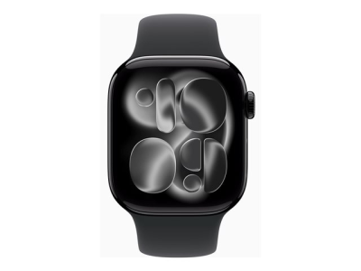 Apple Watch Series 11 (GPS + Cellular) - 42 mm - jet black aluminium - smart klocka med sportband - fluoroelastomer - svart - bandstorlek: S/M - 64 GB - Bluetooth, LTE, Wi-Fi 4, UWB - 5G - 29.7 g MF834QN/A