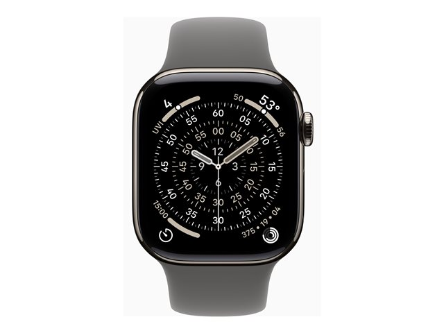 Apple Watch Series 11 (GPS + Cellular) - 42 mm - naturlig titan - smart klocka med sportband - fluoroelastomer - klippgrå - bandstorlek: M/L - 64 GB - LTE, Wi-Fi 4, UWB, Bluetooth - 5G - 34.6 g MF8N4QN/A