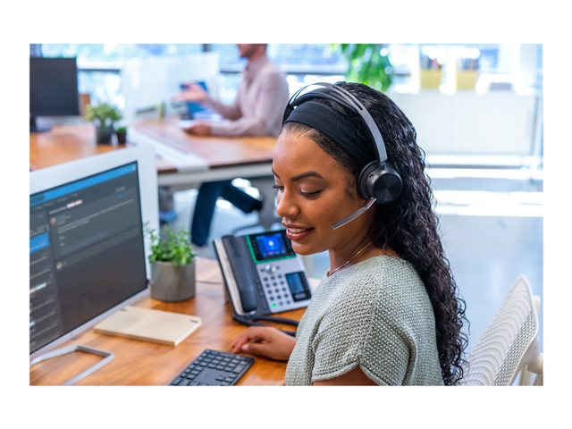 HP Poly Voyager Focus 2 - Headset - på örat - Bluetooth - trådlös, kabelansluten - aktiv brusradering - USB-C via Bluetooth-adapter - svart 77Y89AA