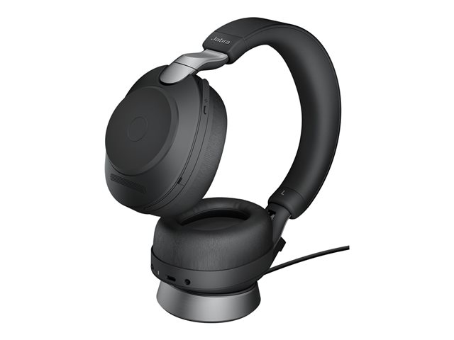 Jabra Evolve2 85 UC Stereo - Headset - fullstorlek - Bluetooth - trådlös, kabelansluten - aktiv brusradering - 3,5 mm kontakt - ljudisolerande - svart 28599-989-889