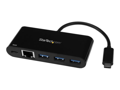 StarTech.com USB-C till Ethernet-adapter med USB 3.0-hubb med 3 portar och Power Delivery - Nätverksadapter - USB-C - Gigabit Ethernet - svart