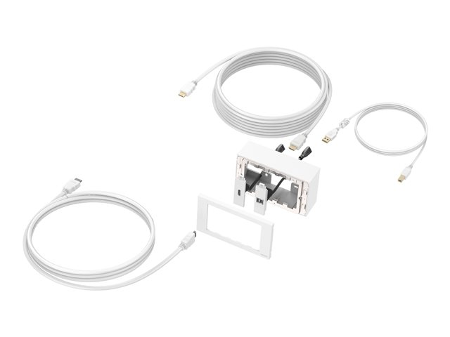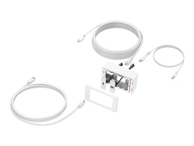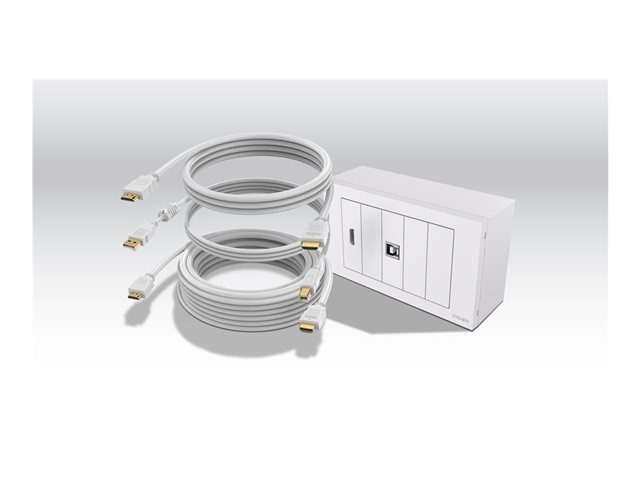 Förpackningens innehåll3 tomma paneler, 1 x HDMI-modul, 1 x USB (B-typ fram) insticksmodul, HDMI-kabel (3 m), USB-kabel (5 m), 1 x 2-Gang Surround, 1 x 2-Gang UK Backbox, HDMI-kabel (5 m)