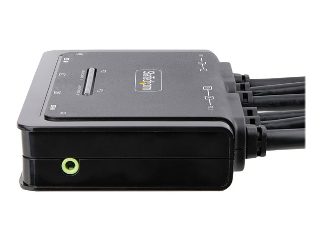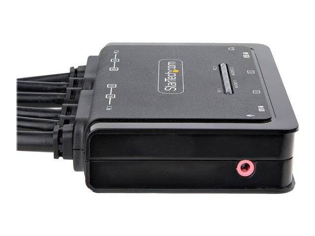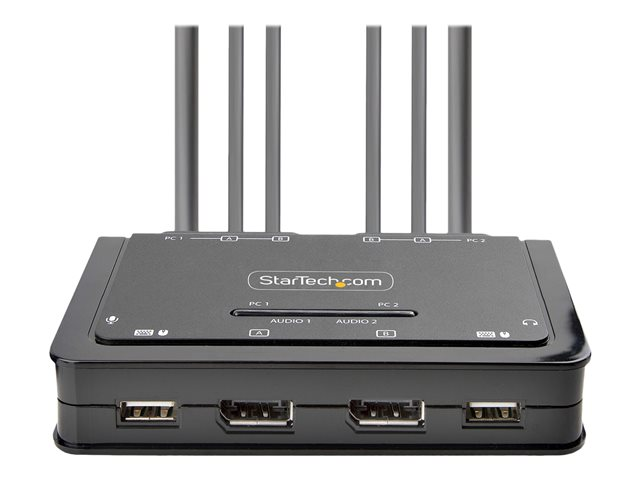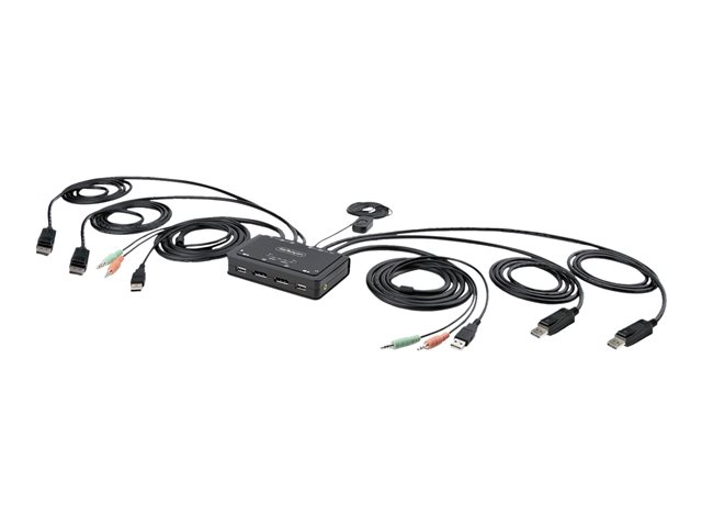 StarTech.com 2-Port Dual-Monitor DisplayPort Cable KVM Switch, 4K 60Hz, Compact KVM with 5ft/1.5m USB-A/DisplayPort/Audio Integrated Cables, Bus Powered - Remote Push Button/Hotkey Switching (C2-DD46-UA2-CBL-KVM) - Omkopplare för tangentbord/video/mus/ljud/USB - kompakt - 2 x KVM/ljud/USB - 1 lokal användare - skrivbordsmodell