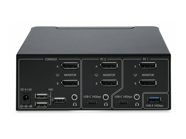StarTech.com 2-Port Dual-Monitor DisplayPort KVM Switch, 8K 60Hz / 4K 144Hz, DP 1.4, 2x USB 10Gbps Ports, 4x USB HID Ports, Hotkey Switching, TAA Compliant - Omkopplare för tangentbord/video/mus/ljud/USB - 2 x KVM/ljud/USB - 1 lokal användare - skrivbordsmodell - TAA-kompatibel