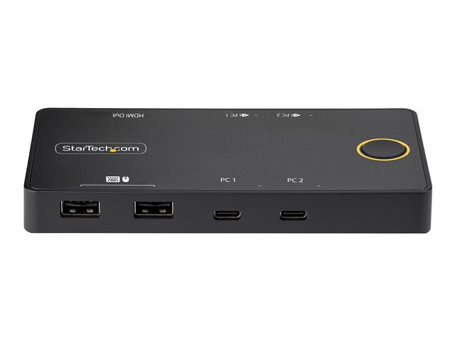 - KLAR ATT ANVÄNDAS: Kompakt KVM är bussdriven och inkluderar två 3ft/1m USB-C värdkablar; Liten formfaktor är robust och har fästa gummifötter som håller KVM på plats under användning; Strömlinjeformad portlayout; LED-indikatorer för port och laddningsstatus