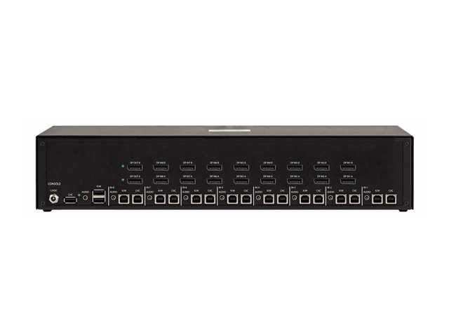 | Gränssnitt | 16 x DisplayPort-ingång hona 8 x CAC-ingång common access card (CAC) 8 x tangentbord/mus Type B 8 x ljudinmatning telefon stereo 3,5 mm hona 2 x DisplayPort-utgång 1 x USB-utgång Type A vanlig åtkomstkort (CAC), för användare 1 x ljudutmatning telefon stereo 3,5 mm |