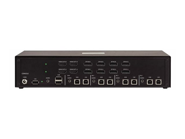 | Gränssnitt | 8 x DisplayPort-ingång hona 4 x USB-ingång Type B common access card (CAC) 4 x tangentbord/mus Type B 4 x ljudinmatning telefon stereo 3,5 mm hona 4 x HDMI-utgång 2 x USB-utgång Type A 1 x ljudutmatning telefon stereo 3,5 mm 1 x USB-utgång vanlig åtkomstkort (CAC), för användare |