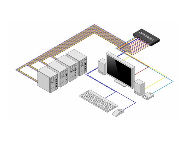 | Gränssnitt | 3 x USB Type A konsol 1 x ljud telefon stereo 3,5 mm konsol 1 x DVI-I-utgång konsol 4 x DVI-I-ingång värd 4 x ljudinmatning telefon stereo 3,5 mm värd 8 x USB Type B värd |