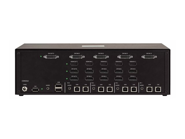 | Gränssnitt | 3 x USB Type A konsol 1 x ljud telefon stereo 3,5 mm konsol 1 x DVI-I-utgång konsol 4 x DVI-I-ingång värd 4 x ljudinmatning telefon stereo 3,5 mm värd 8 x USB-ingång Type B värd 1 x HDMI-utgång 2 x DisplayPort-utgång 4 x HDMI-ingång 8 x DisplayPort-ingång |